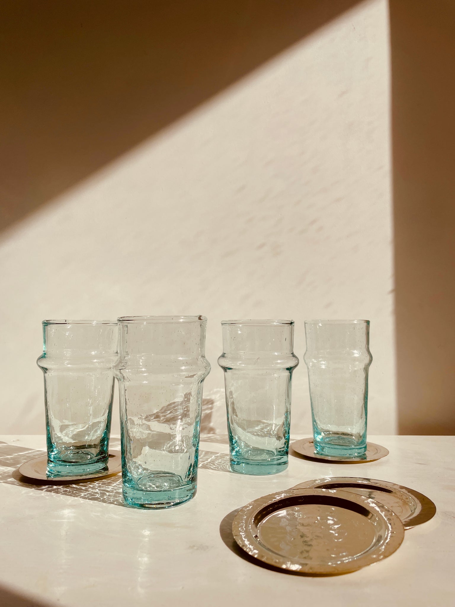 There is no cafe or family in Morocco that has not served typical Moroccan tea in the iconic BELDI glasses. Since the 40’s, these handblown glasses are only made by the iconic brand Verre Beldi respecting the environment using exclusively recycled glass. Mouth-blown by local craftsmen preserving tradition, these timeless glasses hold hot and cold drinks and are to be enjoyed everyday.