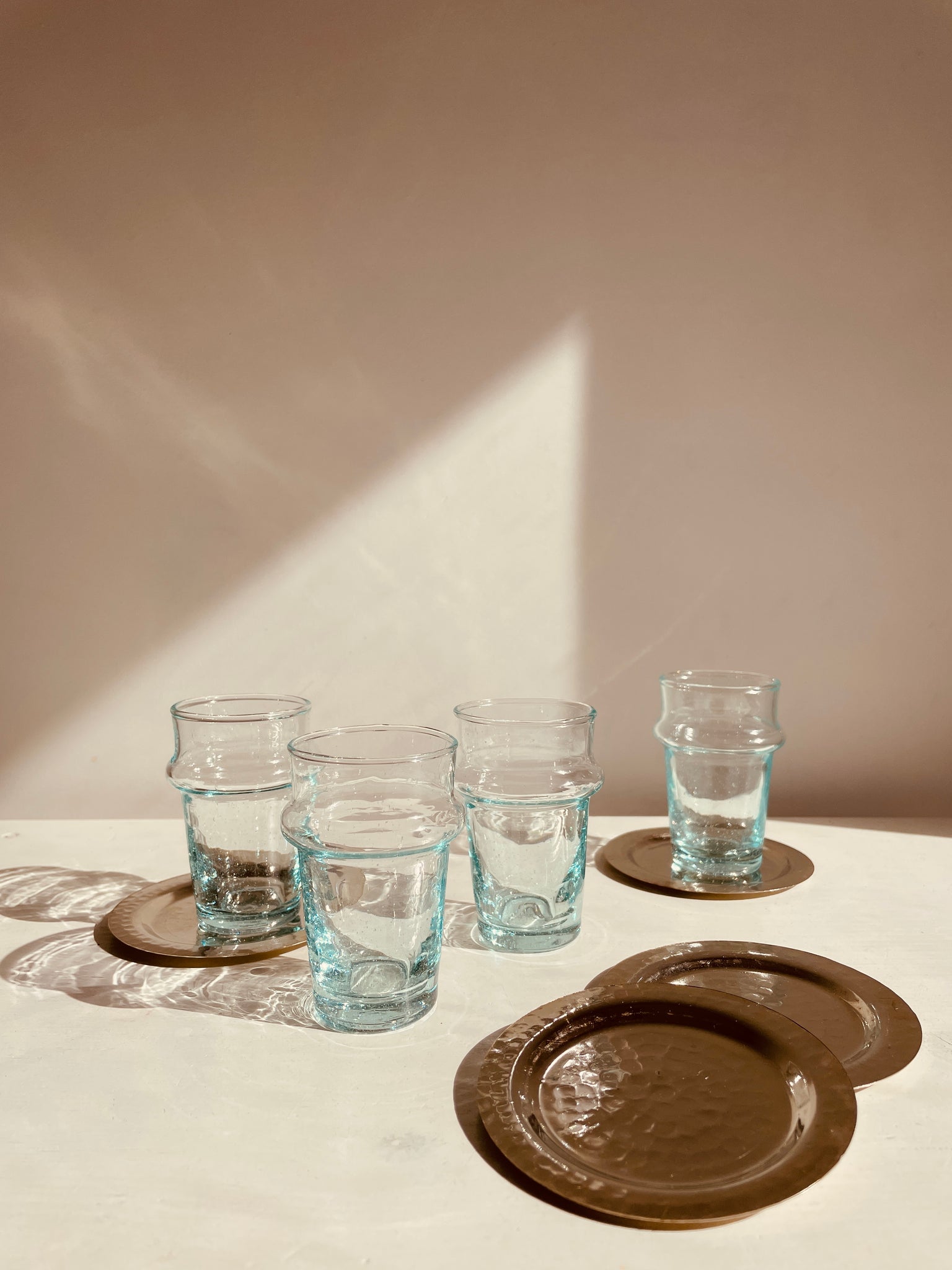 There is no cafe or family in Morocco that has not served typical Moroccan tea in the iconic BELDI glasses. Since the 40’s, these handblown glasses are only made by the iconic brand Verre Beldi respecting the environment using exclusively recycled glass. Mouth-blown by local craftsmen preserving tradition, these timeless glasses hold hot and cold drinks and are to be enjoyed everyday.