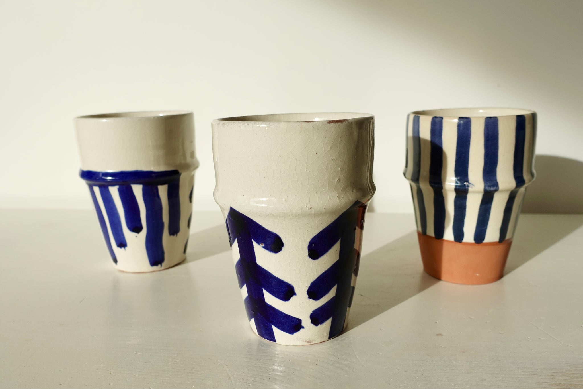 Once made for functional purposes only, the Moroccan beldi mugs are now also widely used as decorative items. The hand-painted berber patterns take us back to the berber tribe. These mugs made of sunbaked clay, moulded and decorated by skilled hands make exceptional tableware.