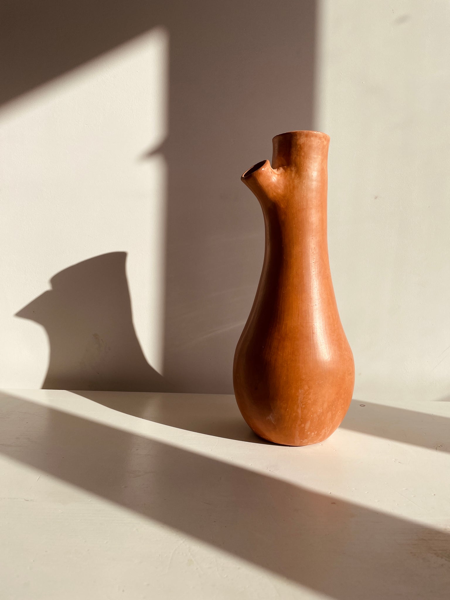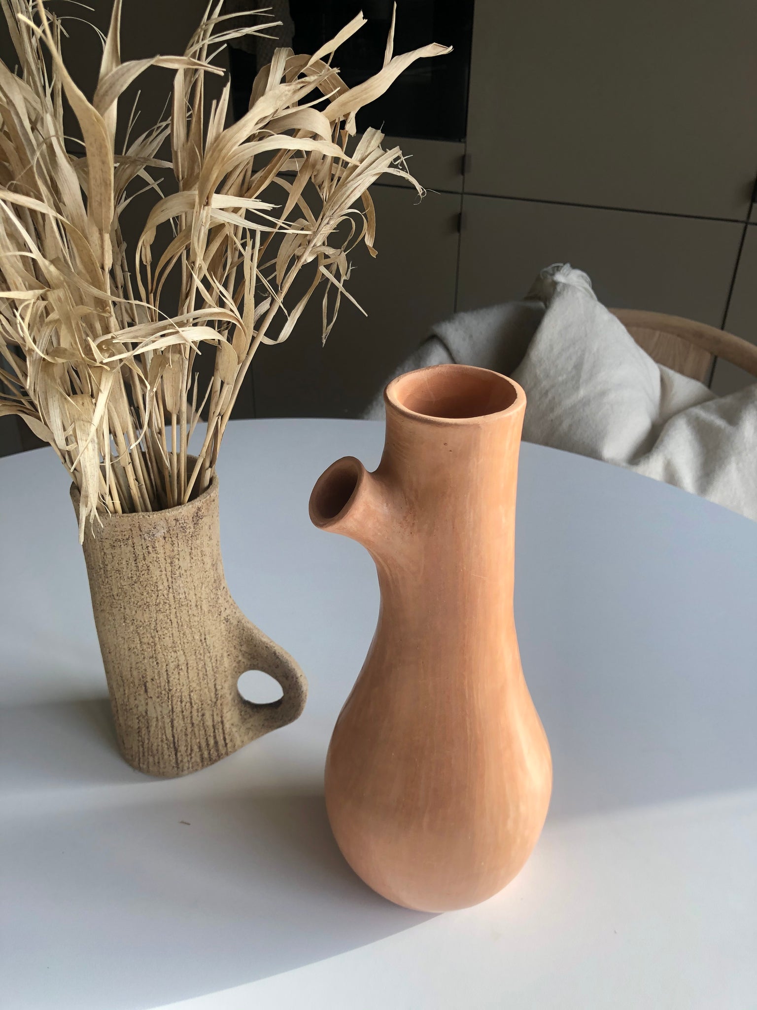 This beautiful organic shaped vase is made of clay that is locally dug from the rif mountain sides. Sun-dried, baked once and unglazed makes this vase only suitable for dried flowers.