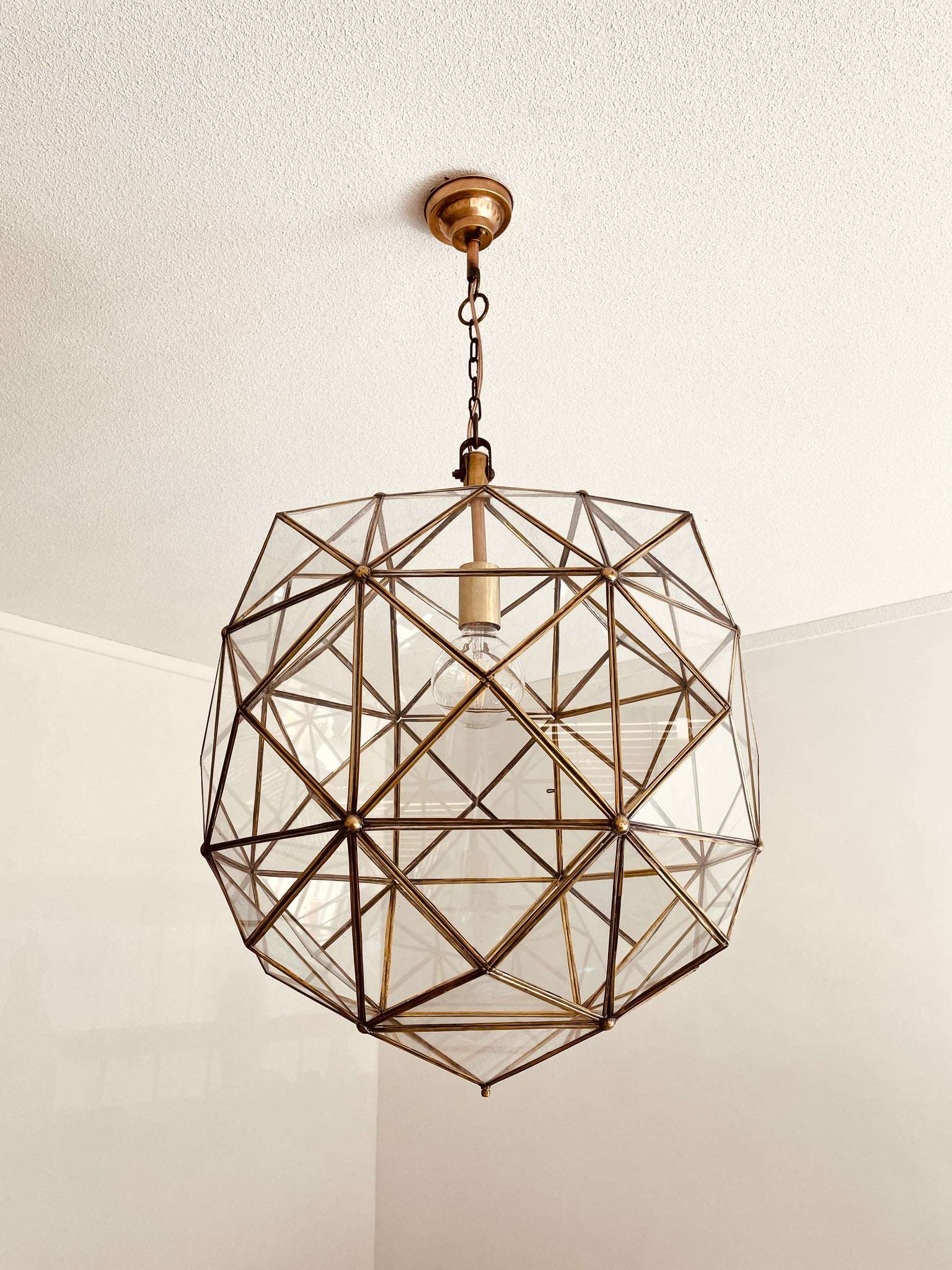 Handcut pieces of glass are beautifully and artistically joined together with brass linings creating traditional geometries in different sizes and shapes. The results: A fully handmade piece of art that modern lights cannot possibly offer.