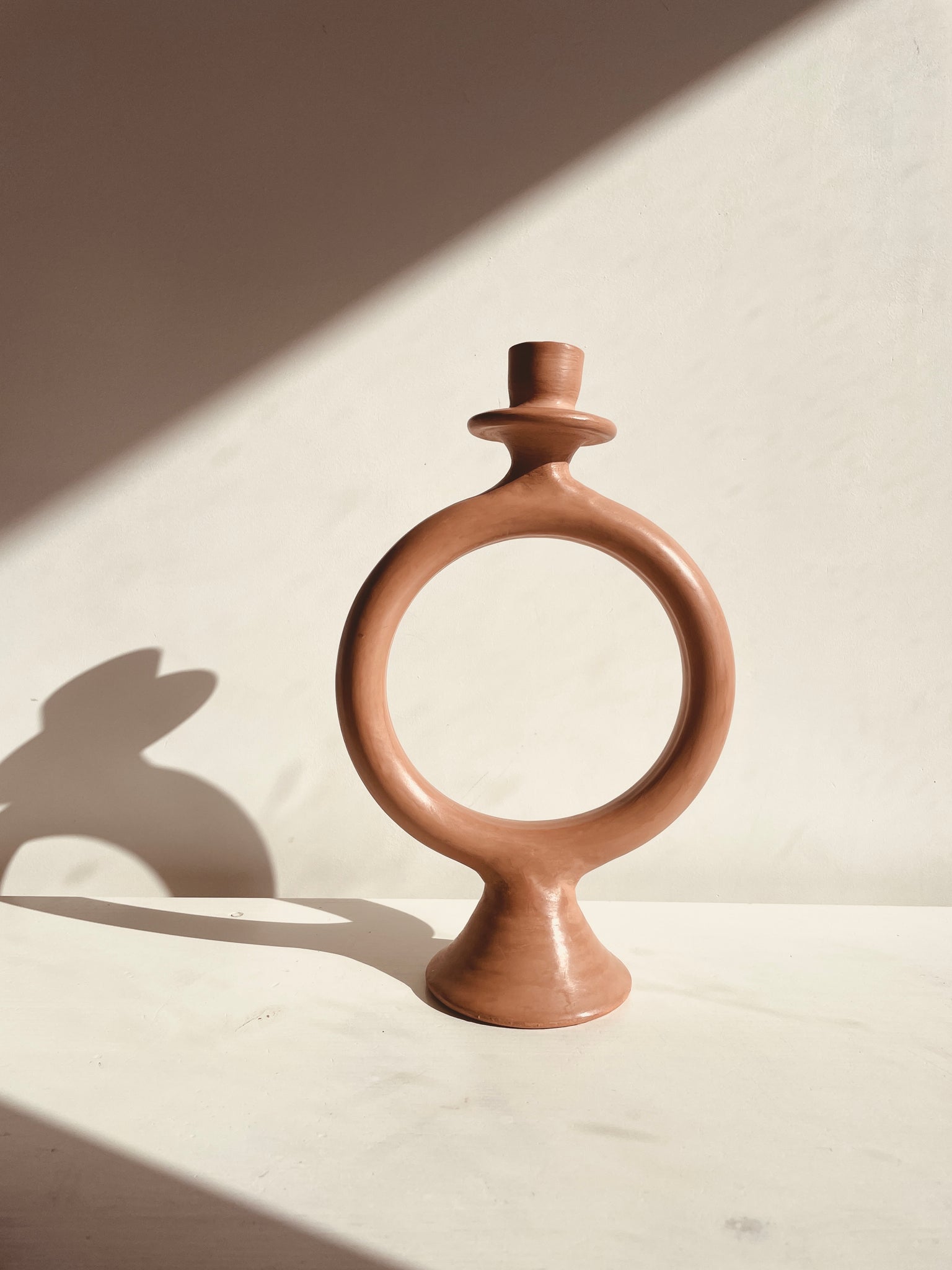 There is something captivating about handmade ceramics. This circled candle holder is not only carefully handmade, but it is also finished off with tadelakt; an ancient natural lime based plaster indigenous to the Marrakech region of Morocco.