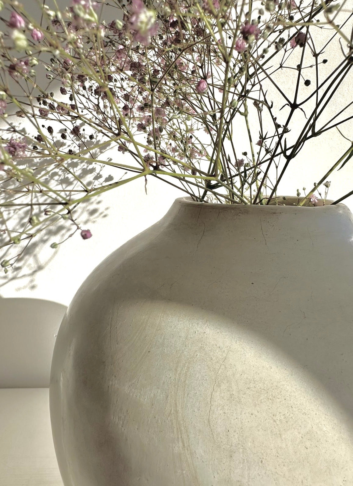 Please note; tadelakt ceramics are breathable and absorb liquids. Therefore, tadelakt ceramics are for decorative purposes only. We recommend to put a glass in the vase for flowers.