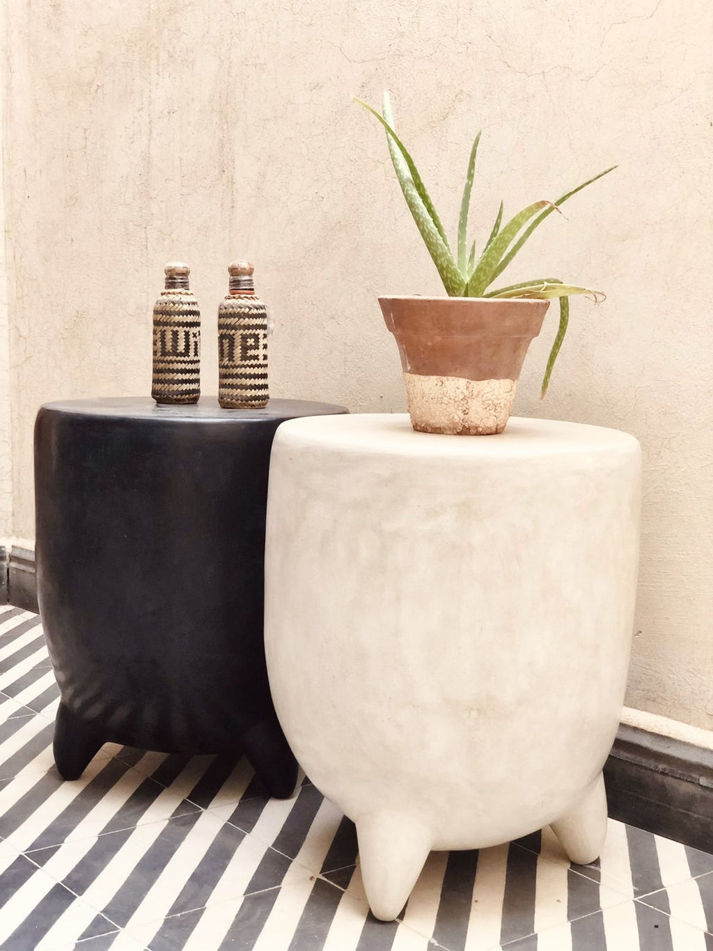 Tadelakt Sidetable with legs - black satin - M - €329,00