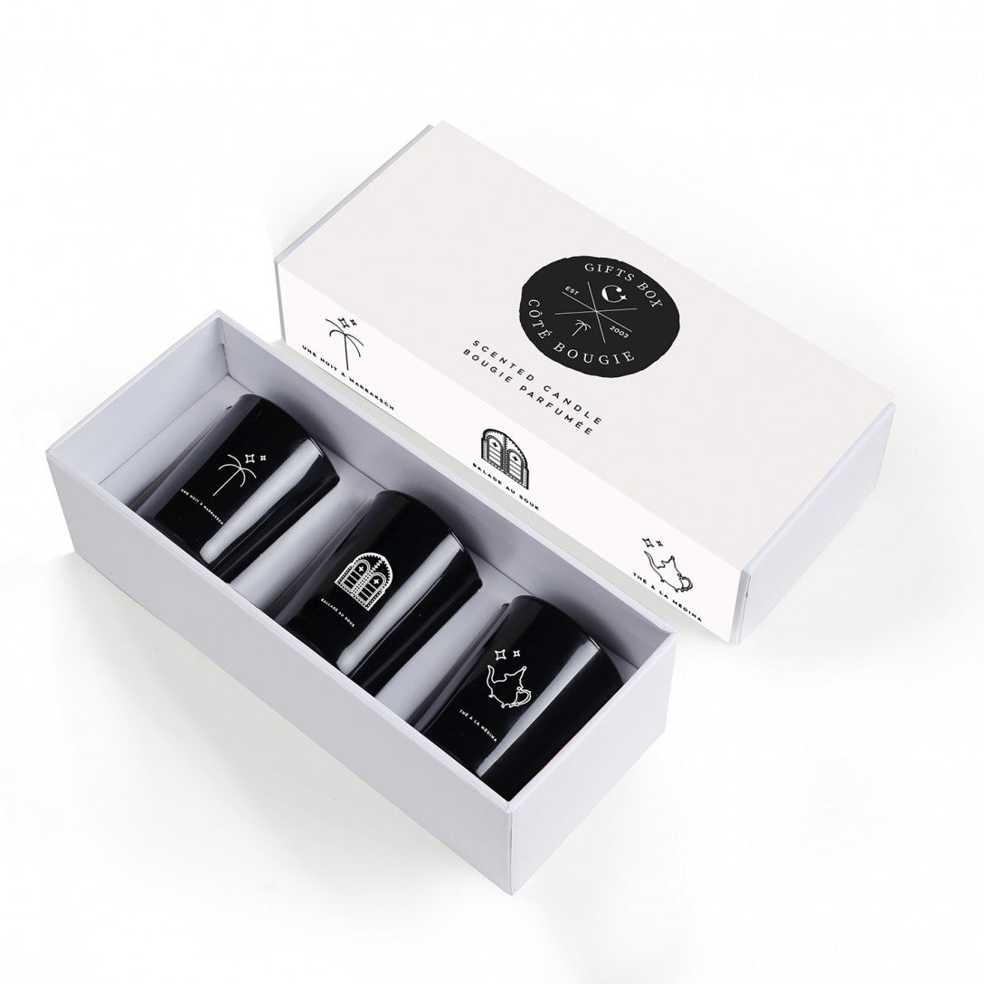 Discover the Black Edition travel box. A mini version of the Thousand and One Nights collection of Côté Bougie, with three atmospheres for three fragrances. A stroll through the souk, tea in the medina or a night in Marrakech.