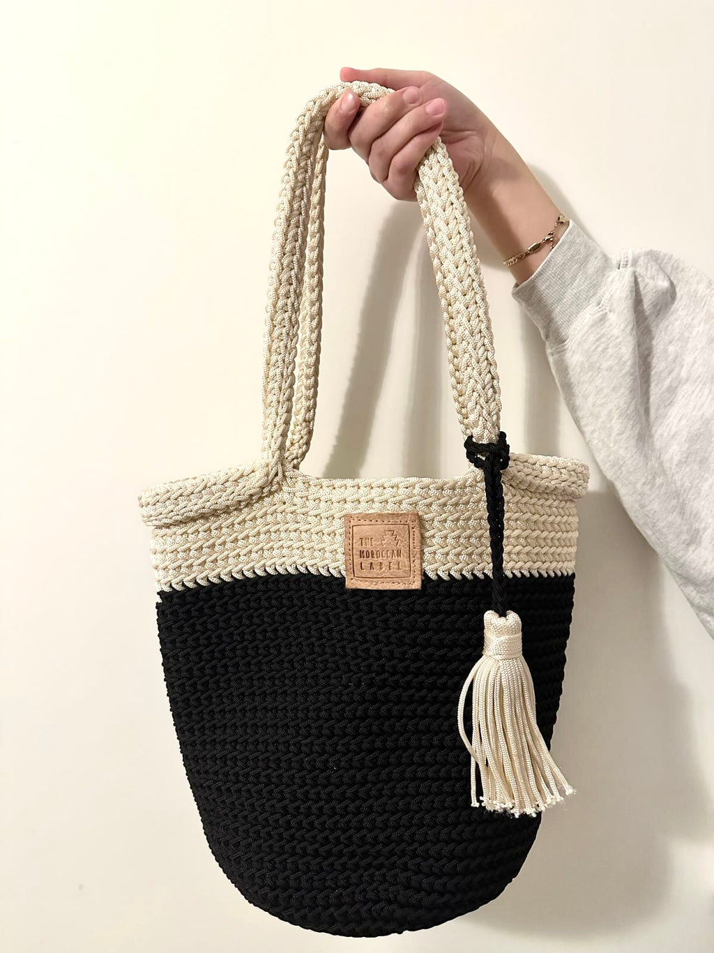 Moroccan crochet shopper bag with tassel - duo colored - €69,00