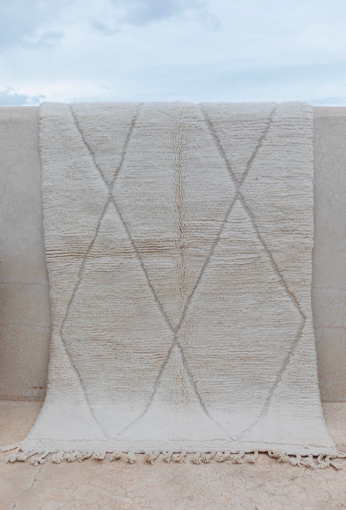 An essential nowadays in the Western interior as they are easily combined in every interior style, are the sophisticated Beni Ouarain rugs. These rugs have a natural look and feel with their minimalistic design consisting of a neutral coloured base with contrasting geometric patterns.