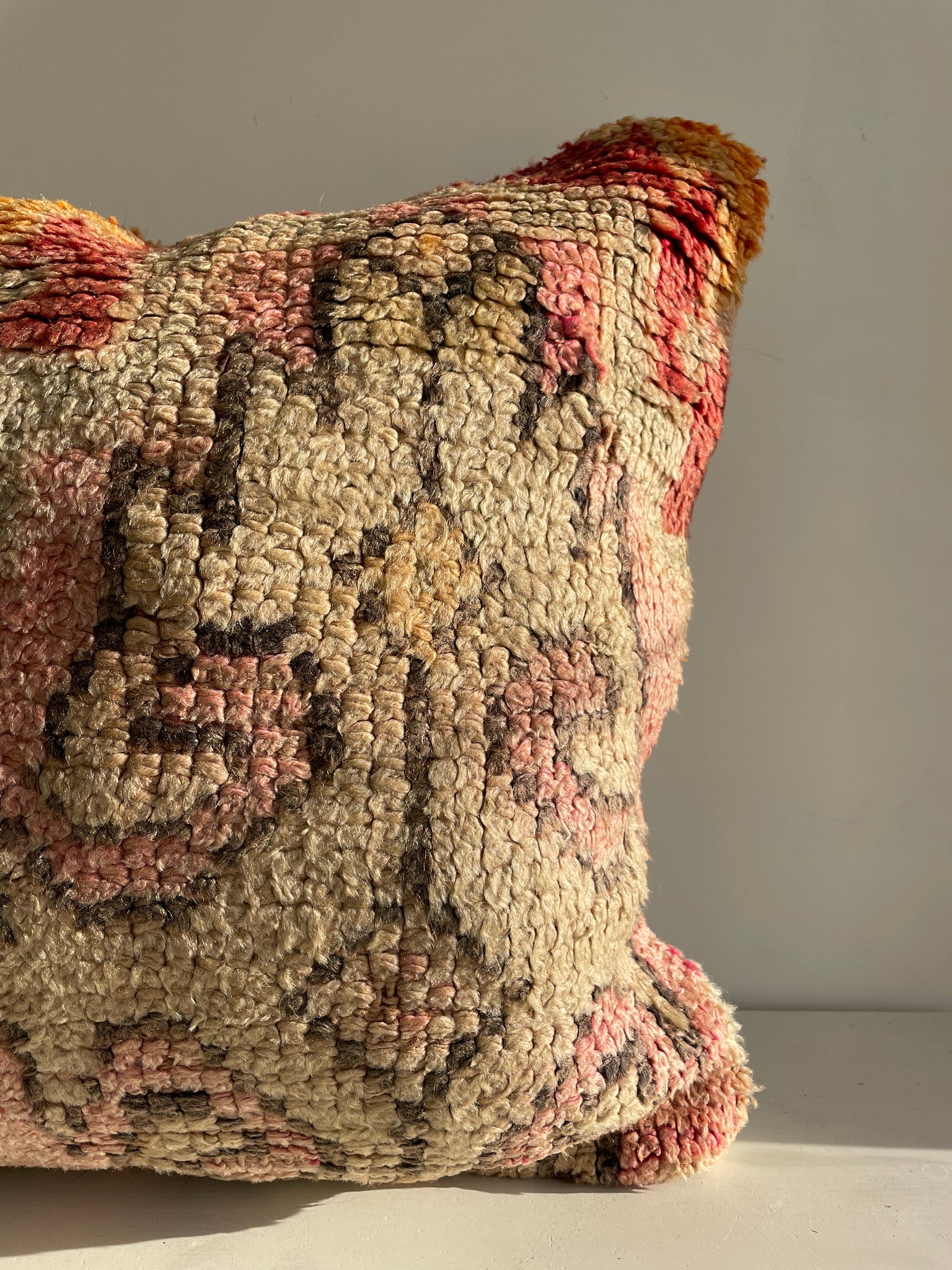 Stunning vintage Moroccan berber rugs get a new life! Our berber pillows are made of vintage berber wool rugs. We are all about sustainability and keeping the crafts of hand-knotting, and thus employment opportunities in these small communities, alive. And you contribute to this by your purchase. Now, that is beautiful.