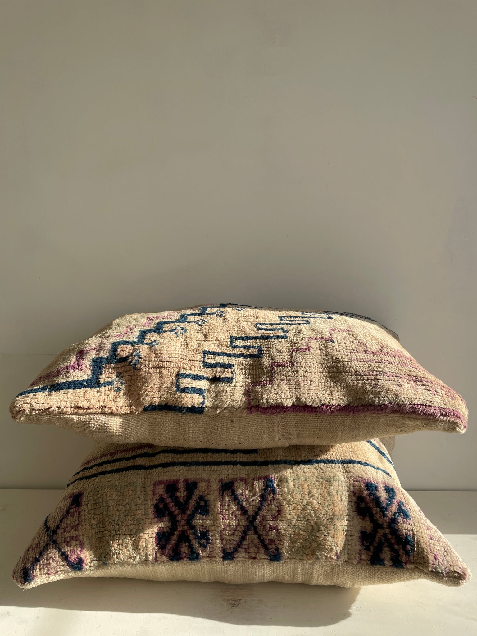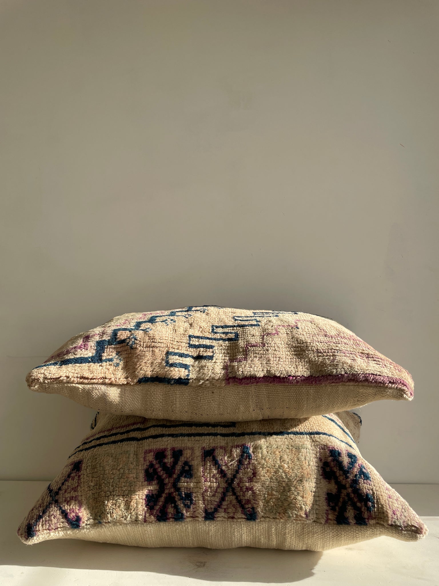 Stunning vintage Moroccan berber rugs get a new life! Our berber pillows are made of vintage berber wool rugs. We are all about sustainability and keeping the crafts of hand-knotting, and thus employment opportunities in these small communities, alive. And you contribute to this by your purchase. Now, that is beautiful.