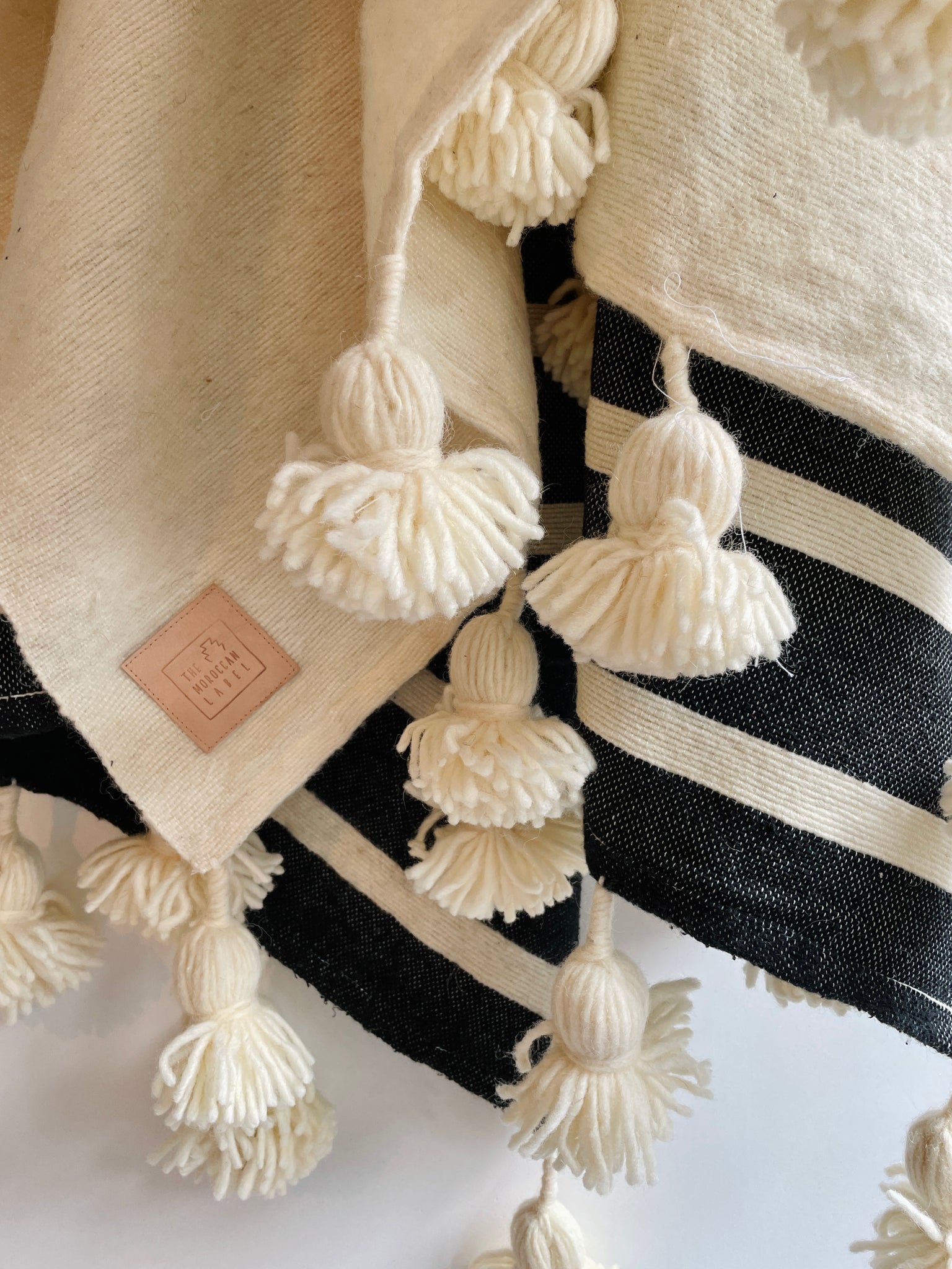 The famous versatile pompom throw that makes your sofa, couch, bed or any other interior piece look classy and simplistic. They come in 100% wool.